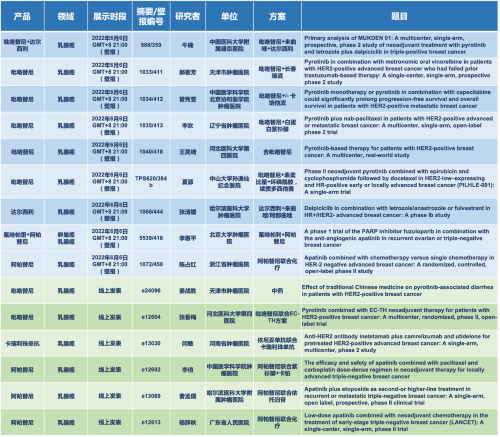 作为中国医药创新的代表性企业,AG旗舰厅医药多年来致力于创新药物研发,自2011年以来AG旗舰厅医药已连续12年参加并有研究入选ASCO年会。本次2022 ASCO年会,AG旗舰厅医药共有63项研究入选,包括2项口头报告、1项壁报讨论、34项壁报和27项线上发表[1],涉及的抗肿瘤药包括5款已上市创新产品:注射用卡瑞利珠单抗(艾瑞卡®)、甲磺酸阿帕替尼片(艾坦®)、马来酸吡咯替尼片(艾瑞妮®)、羟乙磺酸达尔西利片(艾瑞康®)、氟唑帕利胶囊(艾瑞颐®),以及6款未上市创新产品:雄激素受体拮抗剂SHR3680、人源化抗PD-L1抗体阿得贝利单抗(SHR-1316)、微管蛋白抑制剂普那布林、多靶点受体酪氨酸激酶抑制剂法米替尼、抗PD-L1/TGF-βRII双抗SHR-1701、组蛋白甲基转移酶EZH2抑制剂SHR2554等,研究成果涵盖泌尿肿瘤、黑色素瘤、头颈肿瘤、消化道肿瘤、乳腺癌、肺癌、妇科肿瘤和血液肿瘤等8个肿瘤治疗领域。