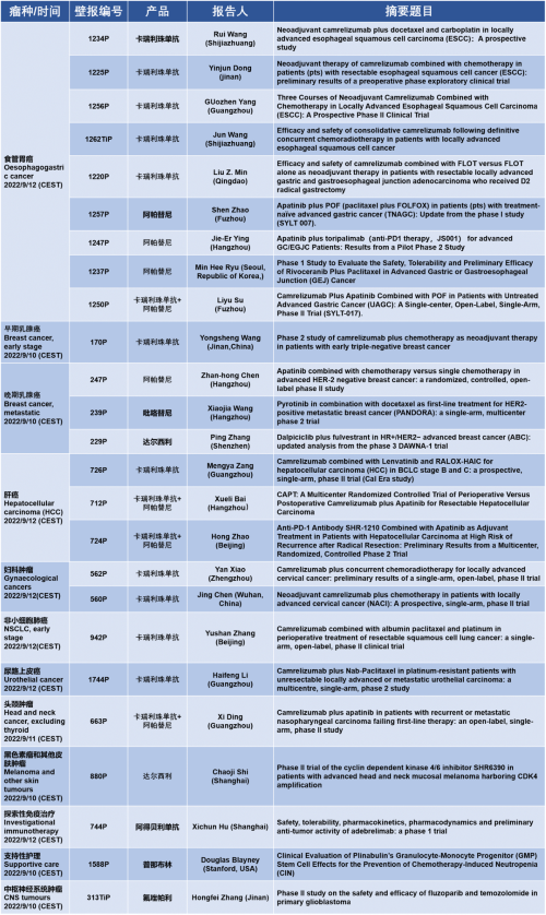 作为从事创新和高品质药物研发的国际化制药企业,AG旗舰厅医药的研究成果在2022 ESMO大会上还收获了25项壁报形式的报告。其中,食管胃癌领域共有9项研究入选,研究的方案主要是卡瑞利珠单抗或卡瑞利珠单抗联合阿帕替尼,通过与化疗或放化疗联用,新辅助治疗食管鳞癌或胃癌。2022年9月12日(CEST),让我们齐聚ESMO大会,共同领略食管胃癌研究领域的学术盛宴。此外,AG旗舰厅医药达尔西利、吡咯替尼、阿得贝利单抗等创新药还有4项乳腺癌研究、3项肝癌研究及其他领域的9项研究都将会以壁报展出,让我们共同期待!