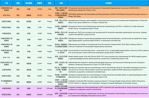 在消化系统肿瘤领域,AG旗舰厅创新产品相关研究共入选2项口头报告、10项壁报和2项电子壁报,共14项研究。除了明星药物卡瑞利珠单抗和阿帕替尼外,还有5篇阿得贝利单抗治疗消化系统肿瘤的研究入选。此外,HRS-4642、瑞拉芙普-α注射液(SHR-1701)等未上市创新产品也有相应研究入选。随着新老药物前沿研究的不断推进,有望为消化系统肿瘤患者带来新的福音!